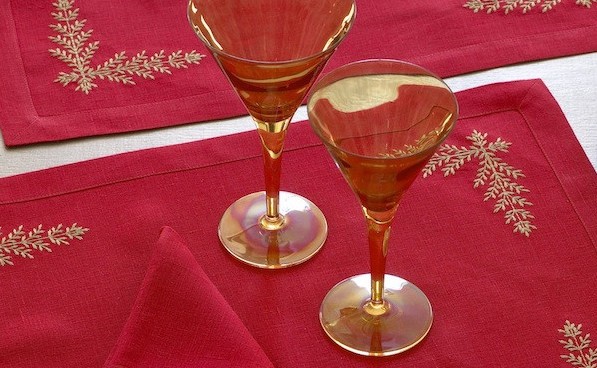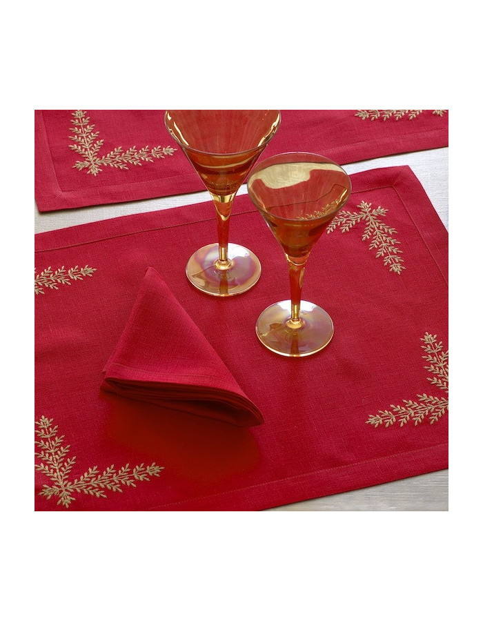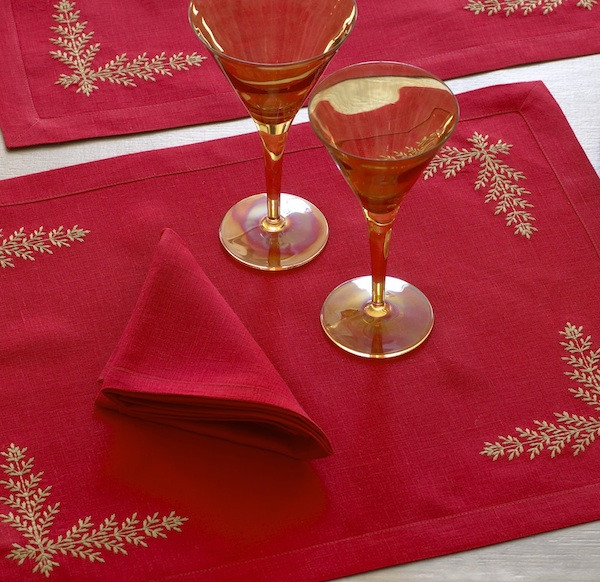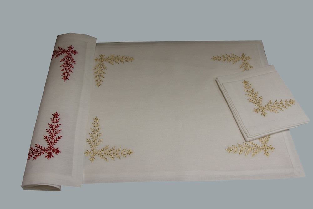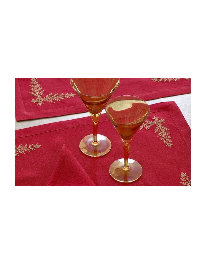 The linen place mat is embroidered on each corner with "bourdon" embroidered stich at the hem.